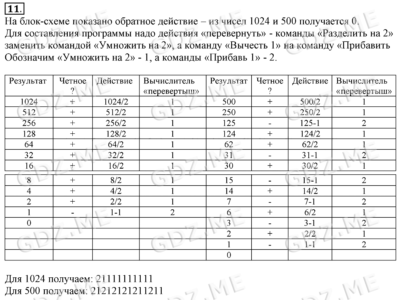 Подробный вариант решения из решебника (ГДЗ): Задание номер 11 (§17. Типы алгоритмов. Cтраницы 118-124) по предмету Информатика, за 6 класс, авторы учебника Босова.