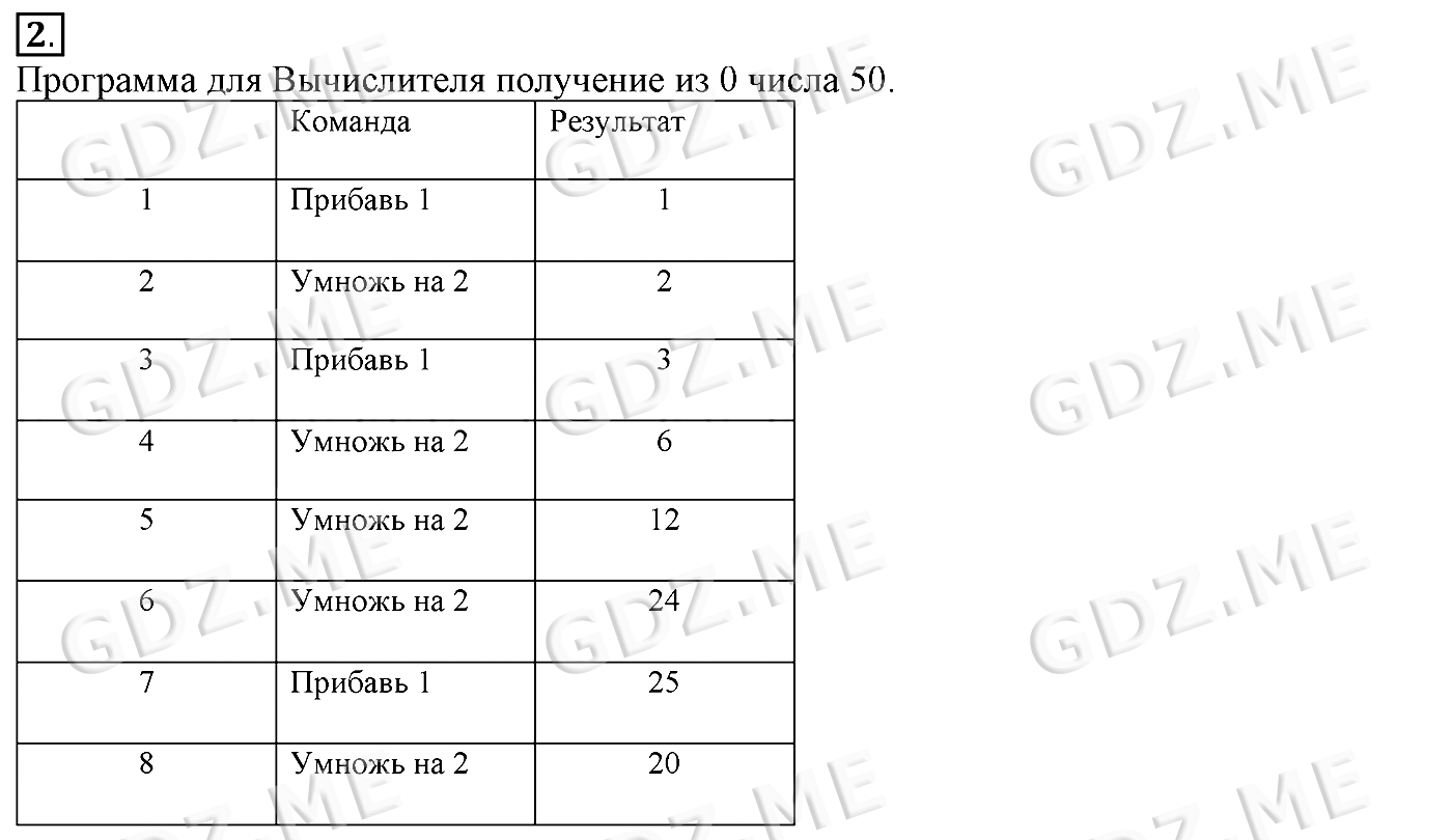 Подробный вариант решения из решебника (ГДЗ): Задание номер 2 (§17. Типы алгоритмов. Cтраницы 118-124) по предмету Информатика, за 6 класс, авторы учебника Босова.
