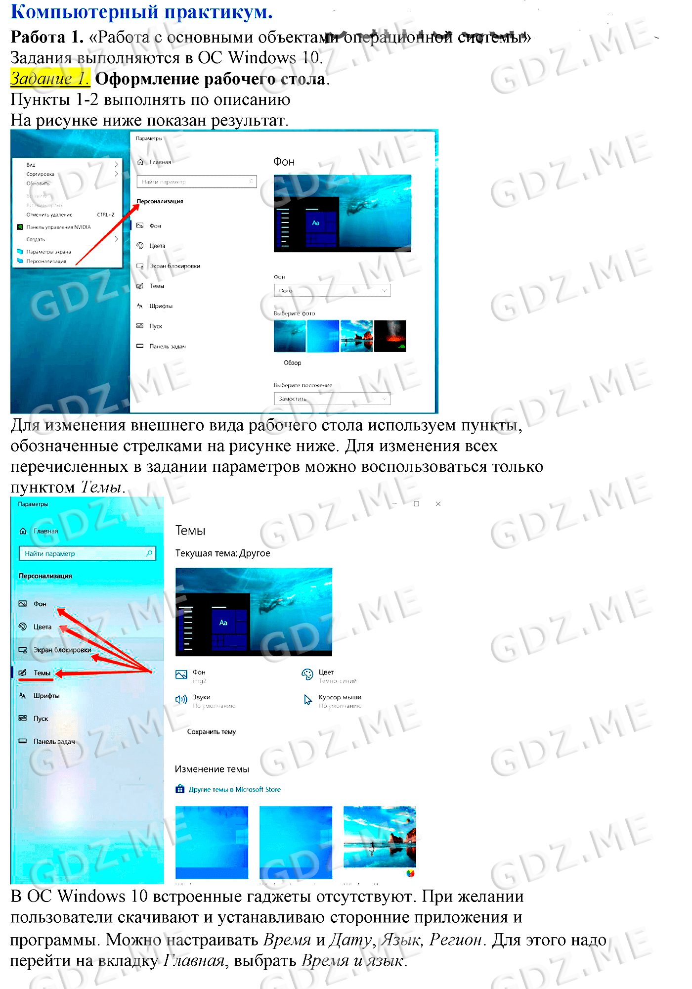 Подробный вариант решения из решебника (ГДЗ): Задание номер 1.1 (Работа 1. Работаем с основными объектами операционной системы) по предмету Информатика, за 6 класс, авторы учебника Босова.