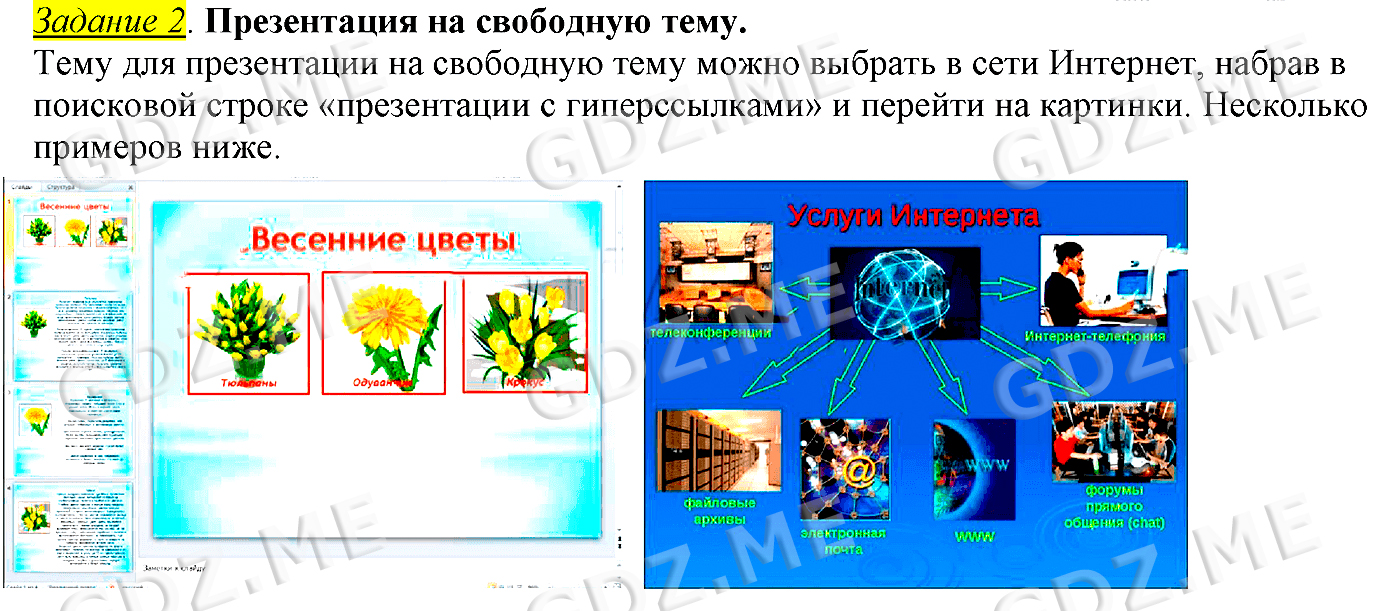 Подробный вариант решения из решебника (ГДЗ): Задание номер 2 (Работа 16. Создаём презентацию с гиперссылками) по предмету Информатика, за 6 класс, авторы учебника Босова.