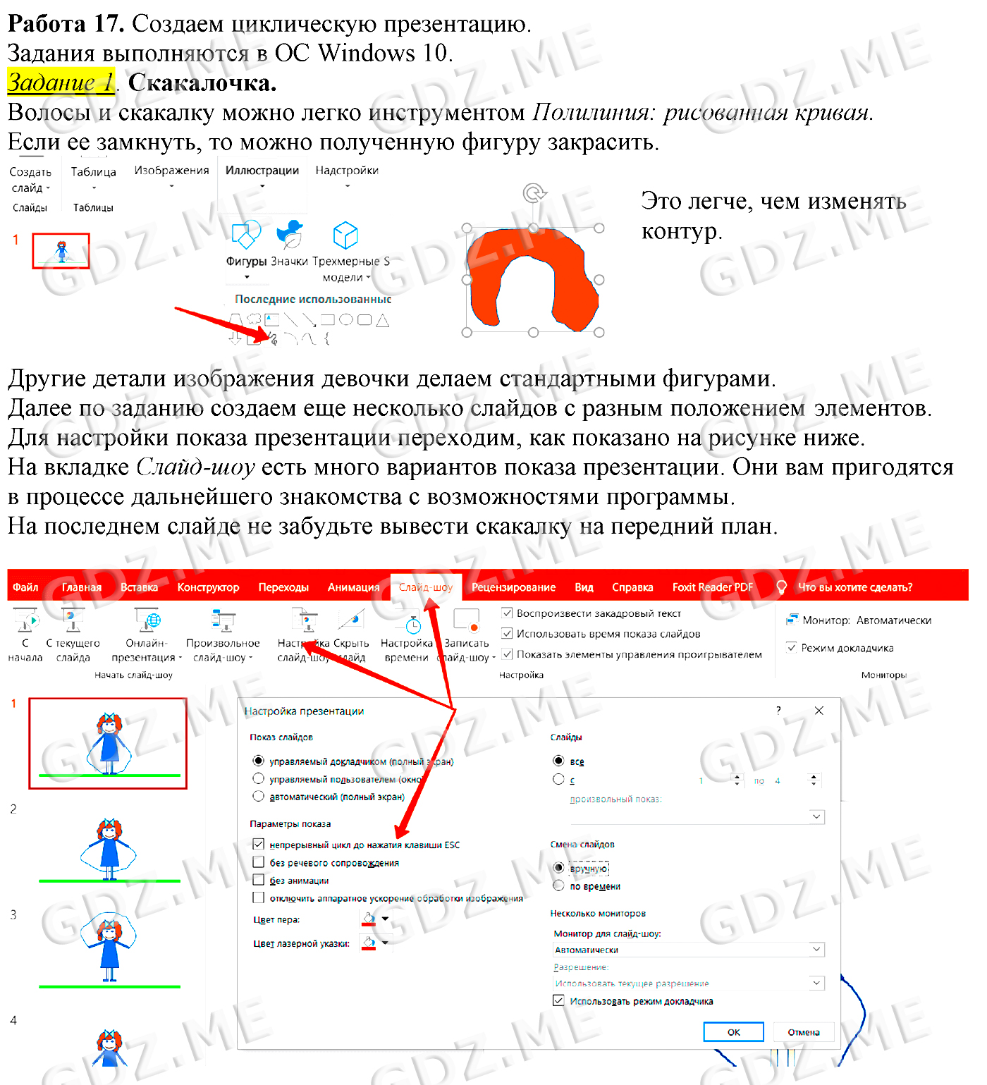Подробный вариант решения из решебника (ГДЗ): Задание номер 1 (Работа 17. Создаём циклическую презентацию) по предмету Информатика, за 6 класс, авторы учебника Босова.