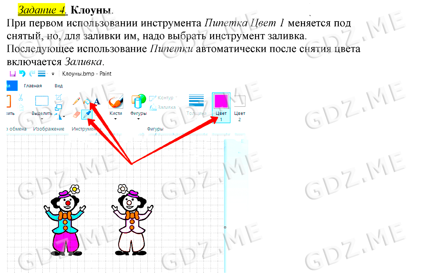 Подробный вариант решения из решебника (ГДЗ): Задание номер 4 (Работа 3. Повторяем возможности графического редактора — инструмента создания графических объектов) по предмету Информатика, за 6 класс, авторы учебника Босова.