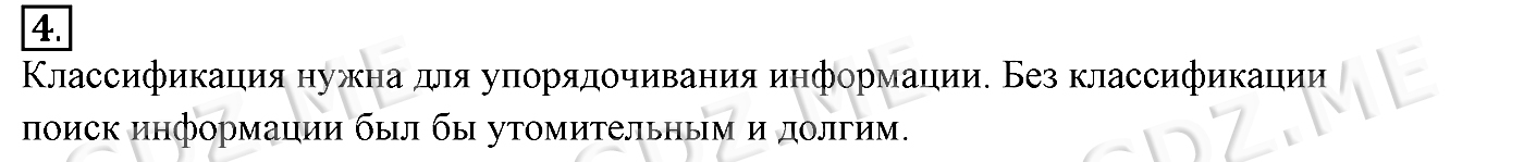 Подробный вариант решения из решебника (ГДЗ): Задание номер 4 (§4. Разновидности объектов и их классификация. Cтраницы 29-33) по предмету Информатика, за 6 класс, авторы учебника Босова.