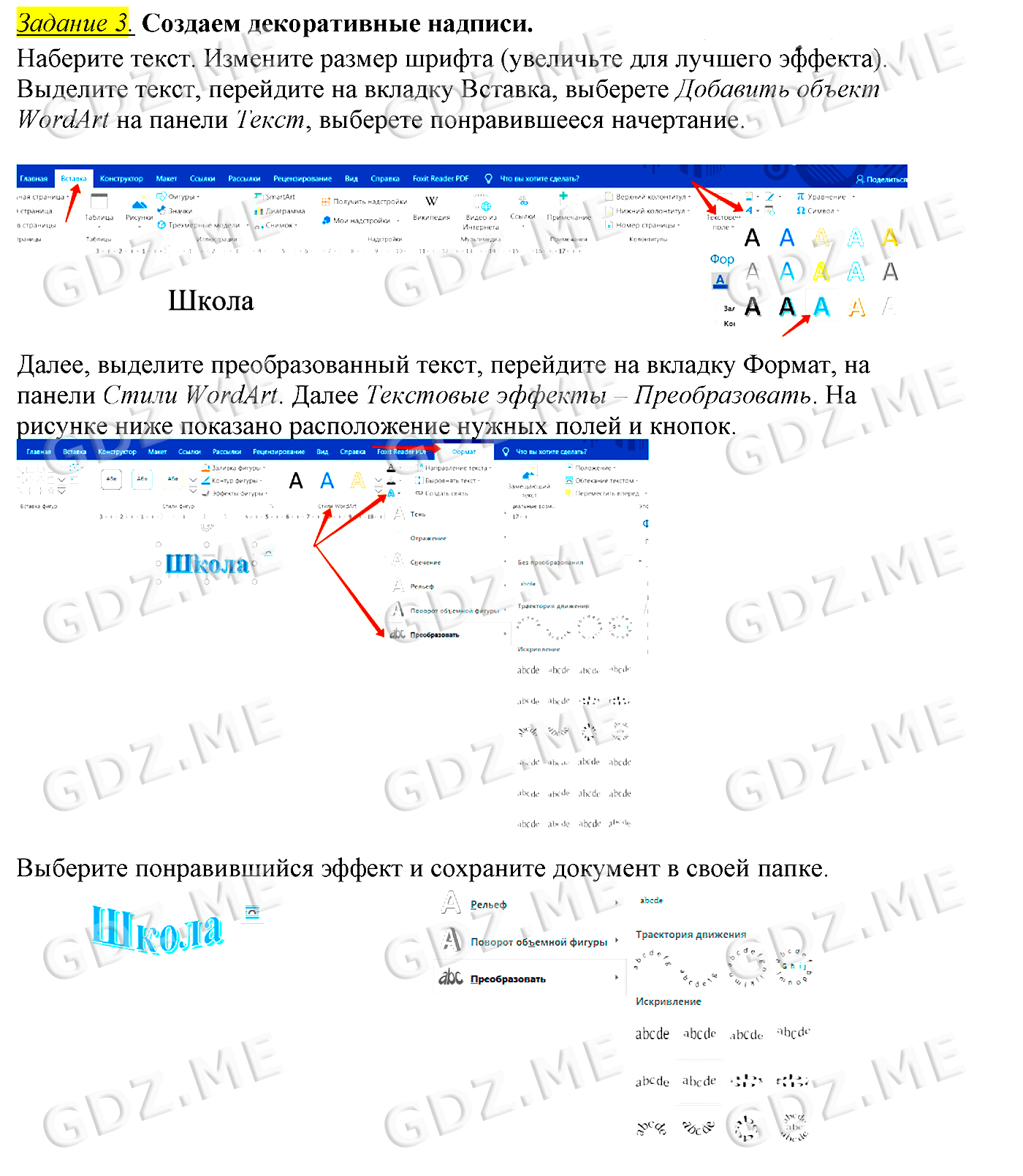 Подробный вариант решения из решебника (ГДЗ): Задание номер 3 (Работа 5. Знакомимся с графическими возможностями текстового процессора) по предмету Информатика, за 6 класс, авторы учебника Босова.