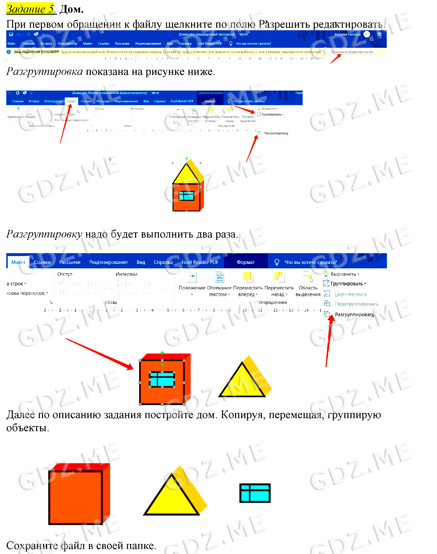 Подробный вариант решения из решебника (ГДЗ): Задание номер 5 (Работа 5. Знакомимся с графическими возможностями текстового процессора) по предмету Информатика, за 6 класс, авторы учебника Босова.