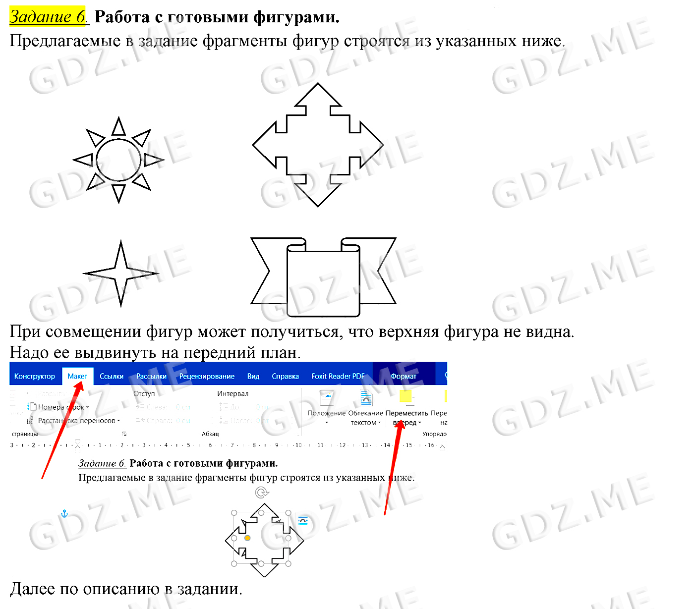 Подробный вариант решения из решебника (ГДЗ): Задание номер 6 (Работа 5. Знакомимся с графическими возможностями текстового процессора) по предмету Информатика, за 6 класс, авторы учебника Босова.