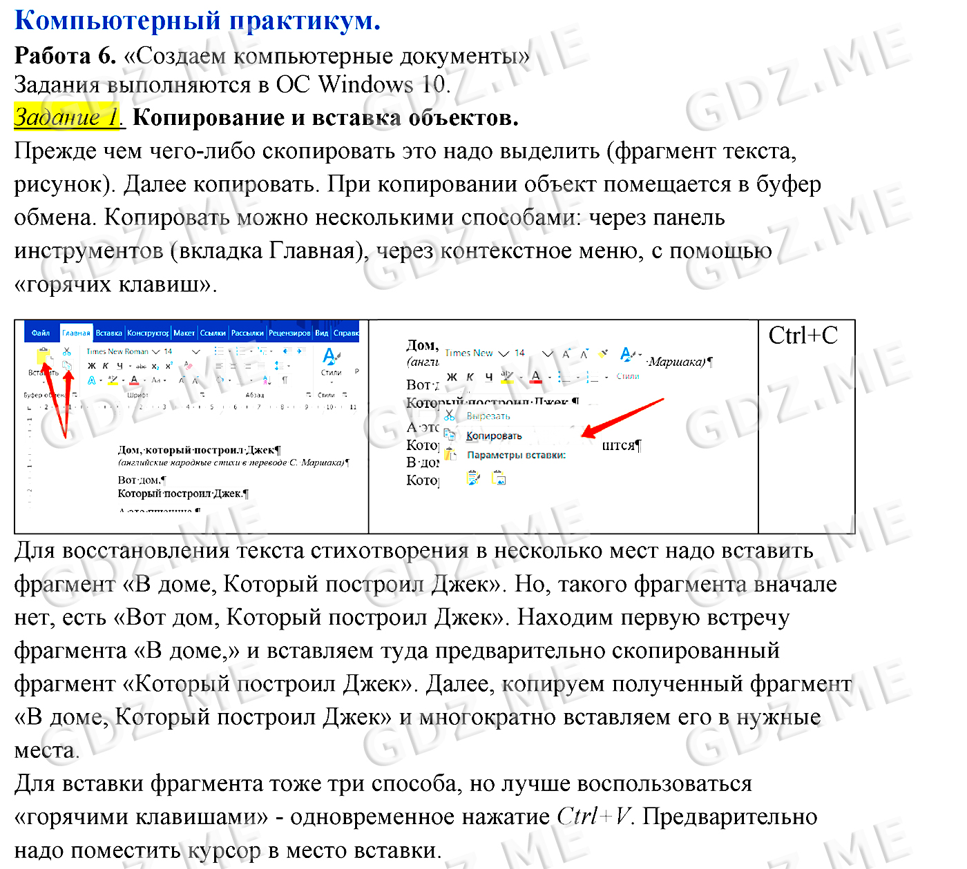 Подробный вариант решения из решебника (ГДЗ): Задание номер 1 (Работа 6. Создаём компьютерные документы) по предмету Информатика, за 6 класс, авторы учебника Босова.