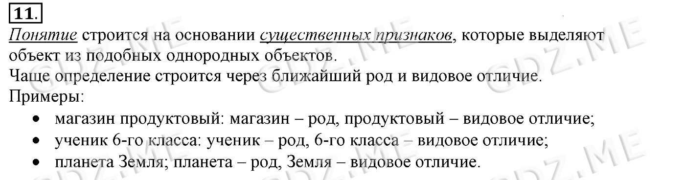 Подробный вариант решения из решебника (ГДЗ): Задание номер 11 (§8. Понятие как форма мышления. Cтраницы 49-53) по предмету Информатика, за 6 класс, авторы учебника Босова.