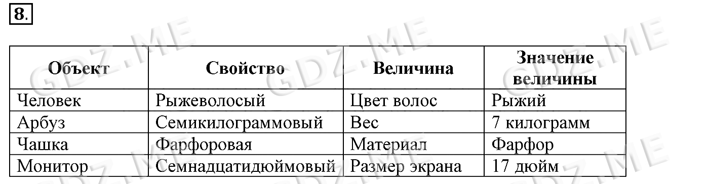 Подробный вариант решения из решебника (ГДЗ): Задание номер 8 (§1. Объекты окружающего мира. Cтраницы 5-11) по предмету Информатика, за 6 класс, авторы учебника Босова.