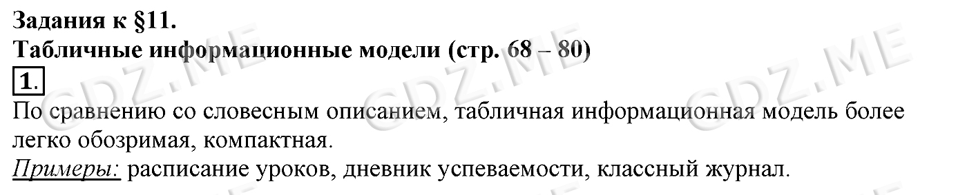 Подробный вариант решения из решебника (ГДЗ): Задание номер 1 (§11. Табличные информационные модели. Cтраницы 68-80) по предмету Информатика, за 6 класс, авторы учебника Босова.