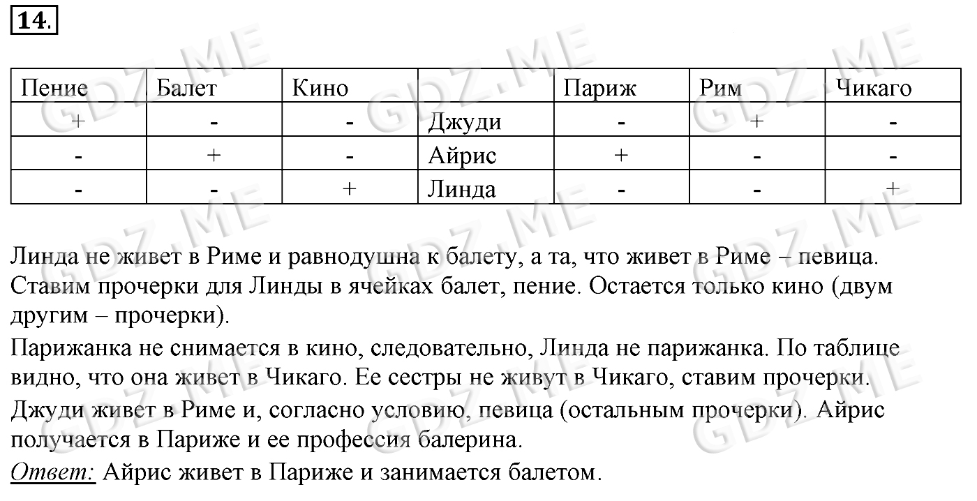 Подробный вариант решения из решебника (ГДЗ): Задание номер 14 (§11. Табличные информационные модели. Cтраницы 68-80) по предмету Информатика, за 6 класс, авторы учебника Босова.