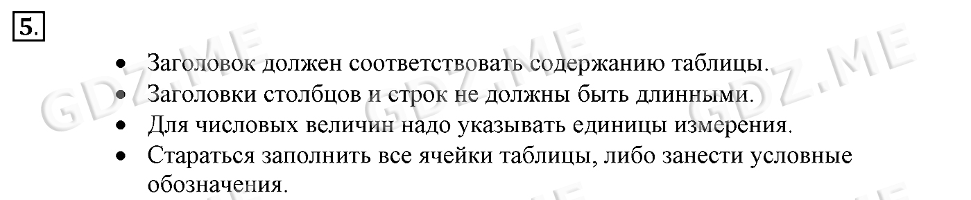 Подробный вариант решения из решебника (ГДЗ): Задание номер 5 (§11. Табличные информационные модели. Cтраницы 68-80) по предмету Информатика, за 6 класс, авторы учебника Босова.