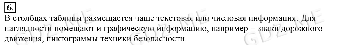 Подробный вариант решения из решебника (ГДЗ): Задание номер 6 (§11. Табличные информационные модели. Cтраницы 68-80) по предмету Информатика, за 6 класс, авторы учебника Босова.
