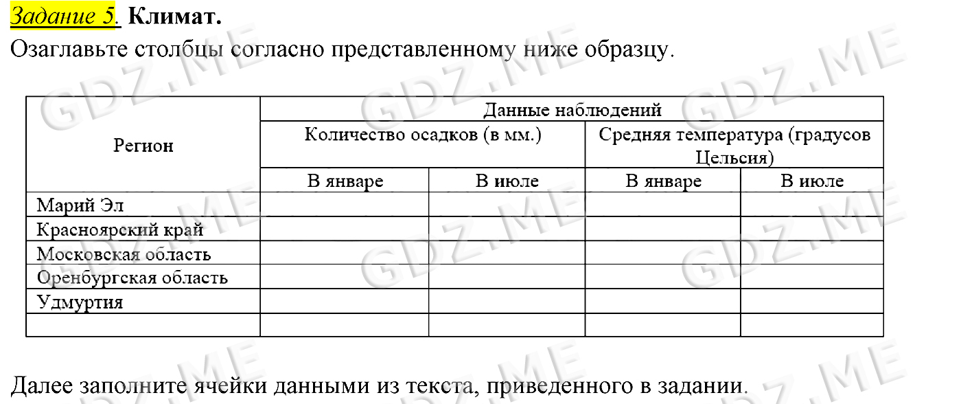 Подробный вариант решения из решебника (ГДЗ): Задание номер 5 (Работа 11. Создаём табличные модели) по предмету Информатика, за 6 класс, авторы учебника Босова.
