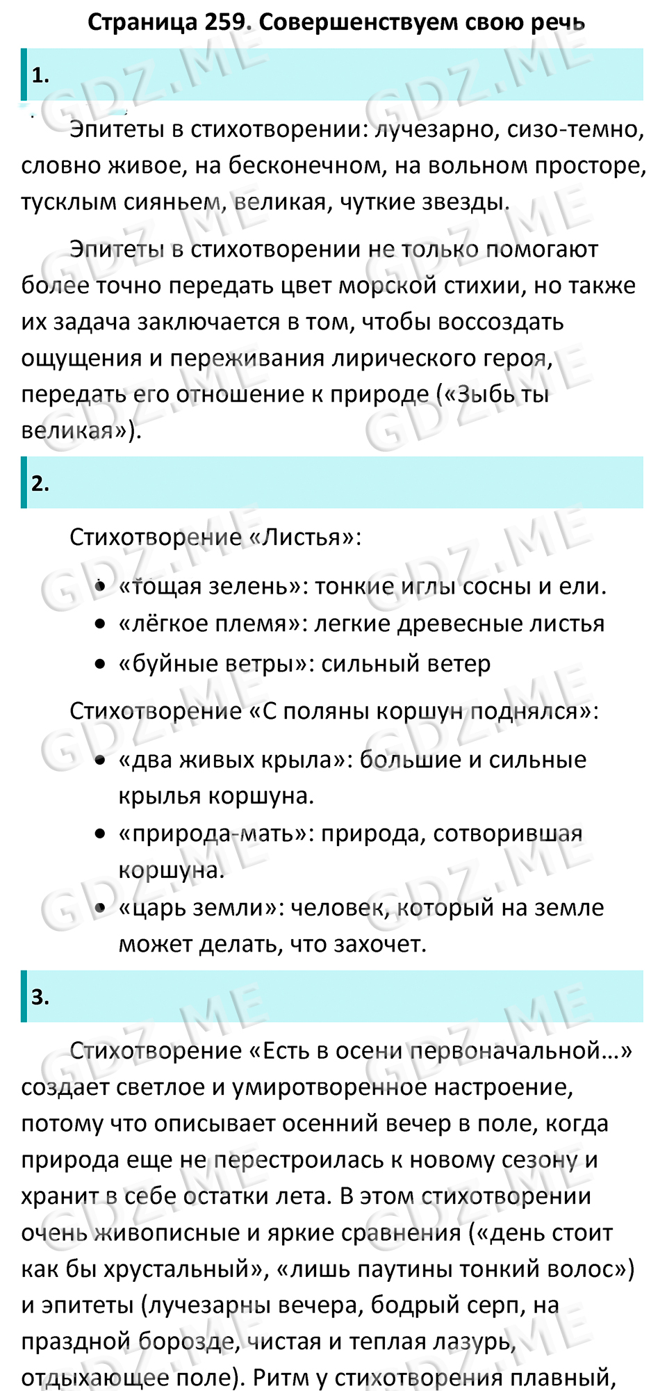 Подробный вариант решения из решебника (ГДЗ): Номер номер 259.1 (НОМЕРА РЕШЕНИЙ. Часть 1. Страницы с 4 по 309) по предмету Литература, за 6 класс, авторы учебника Коровина.