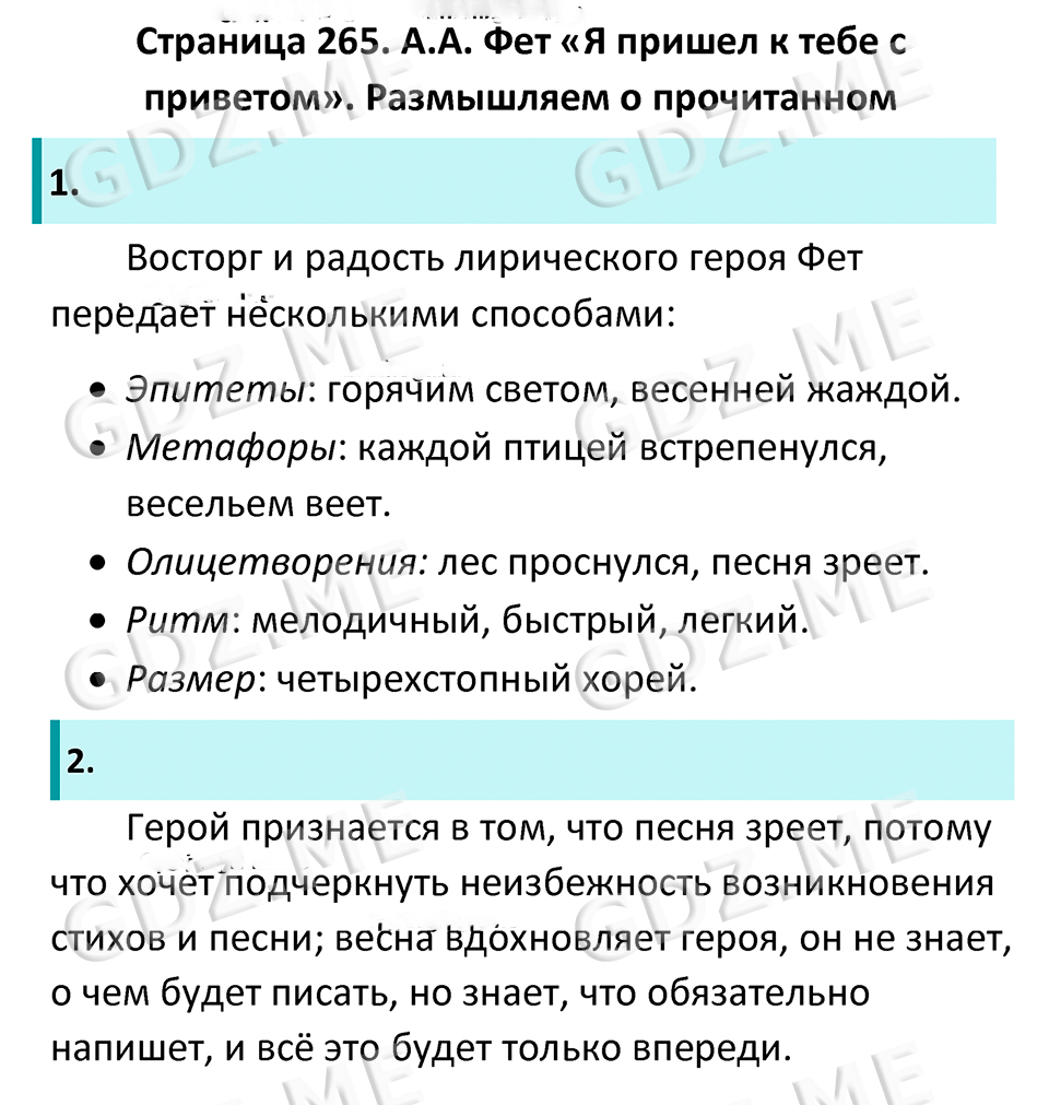 Подробный вариант решения из решебника (ГДЗ): Номер номер 265 (НОМЕРА РЕШЕНИЙ. Часть 1. Страницы с 4 по 309) по предмету Литература, за 6 класс, авторы учебника Коровина.
