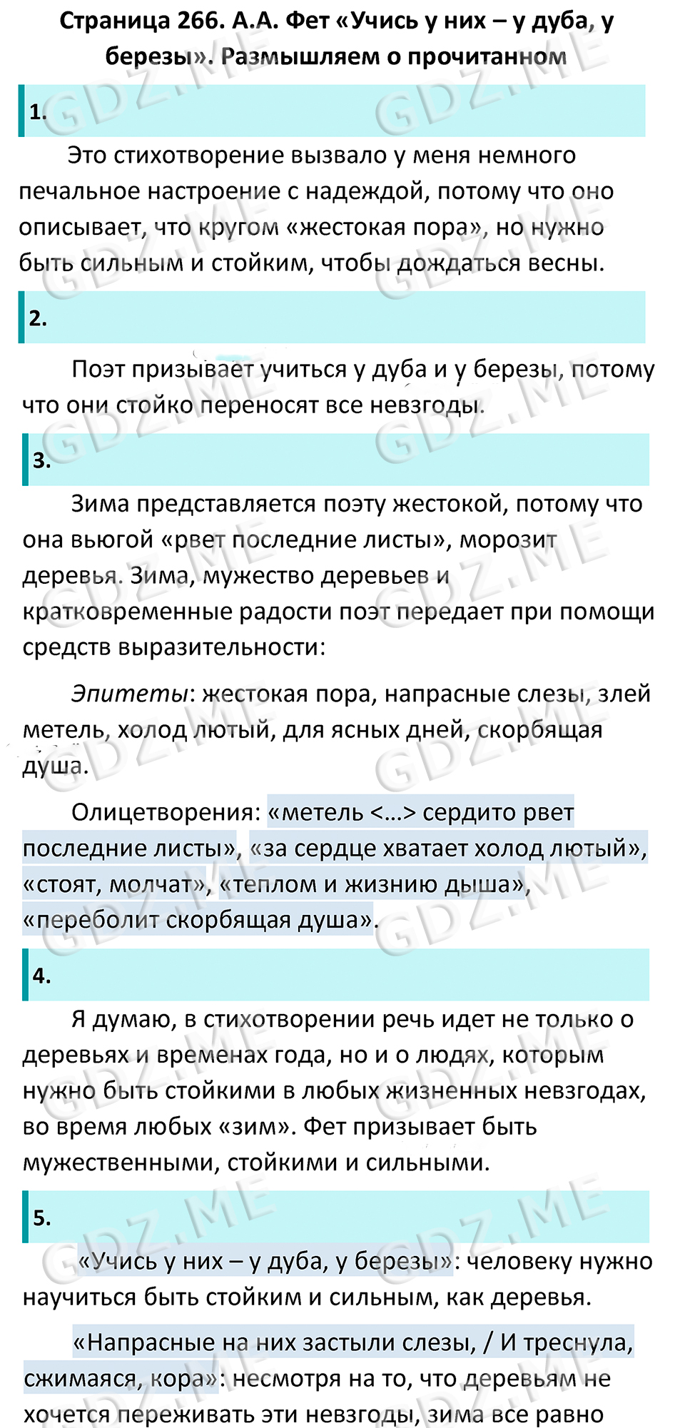 Подробный вариант решения из решебника (ГДЗ): Номер номер 266.1 (НОМЕРА РЕШЕНИЙ. Часть 1. Страницы с 4 по 309) по предмету Литература, за 6 класс, авторы учебника Коровина.