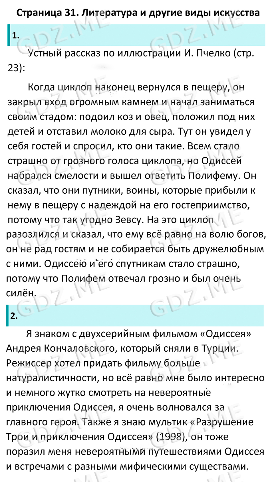 Подробный вариант решения из решебника (ГДЗ): Номер номер 31 (НОМЕРА РЕШЕНИЙ. Часть 1. Страницы с 4 по 309) по предмету Литература, за 6 класс, авторы учебника Коровина.