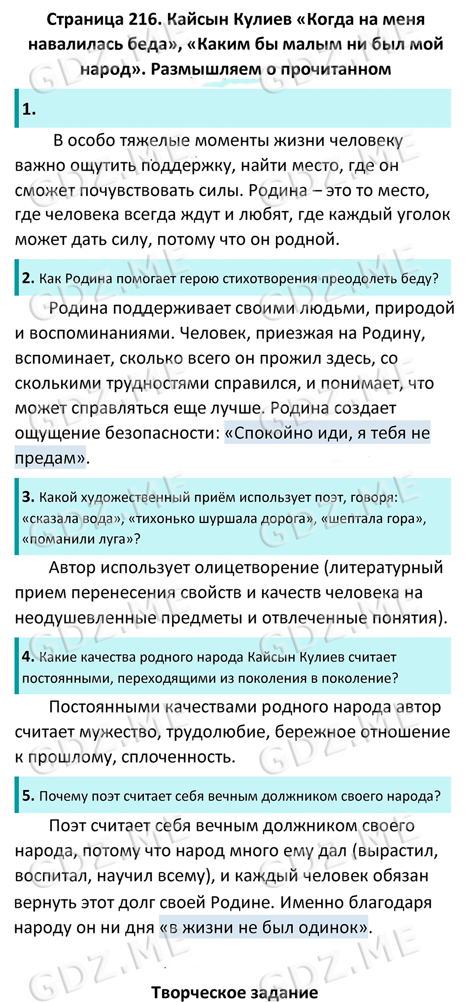Подробный вариант решения из решебника (ГДЗ): Номер номер 216.1 (НОМЕРА РЕШЕНИЙ. Часть 2. Страницы с 5 по 286) по предмету Литература, за 6 класс, авторы учебника Коровина.