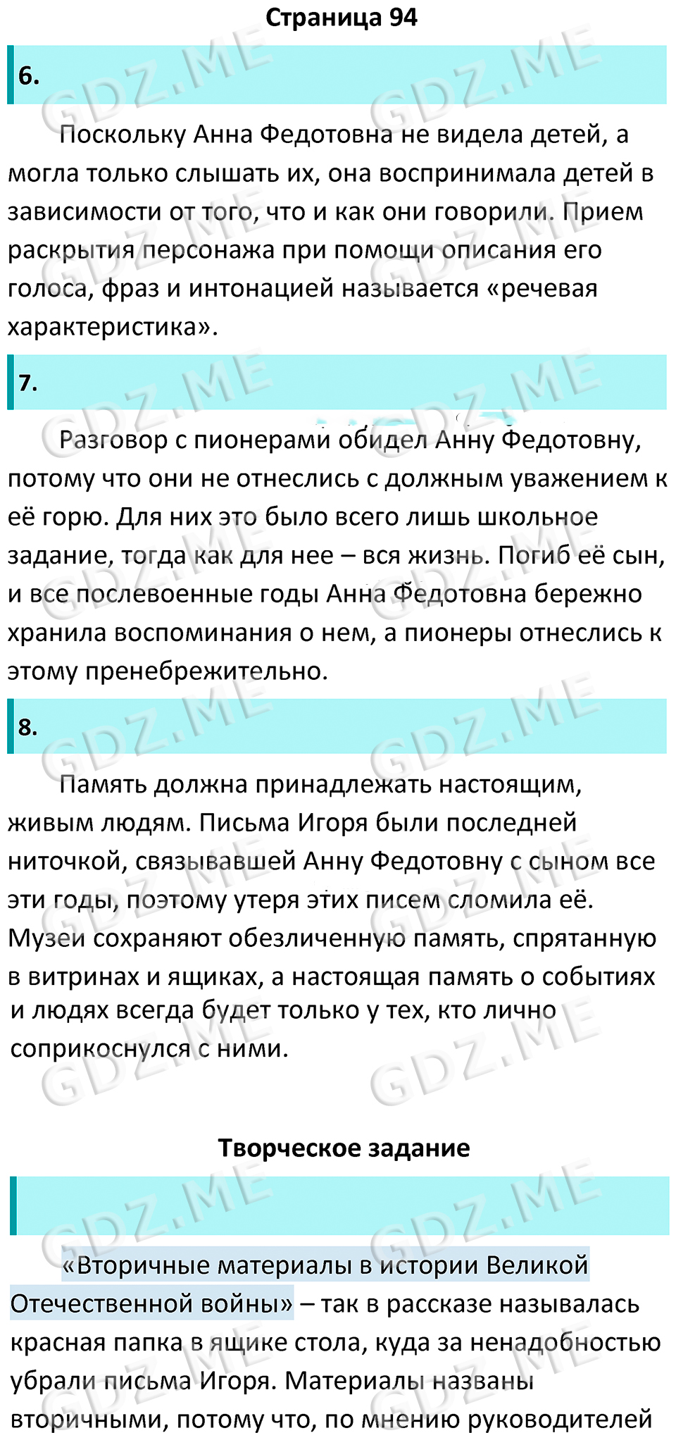 Подробный вариант решения из решебника (ГДЗ): Номер номер 94.1 (НОМЕРА РЕШЕНИЙ. Часть 2. Страницы с 5 по 286) по предмету Литература, за 6 класс, авторы учебника Коровина.