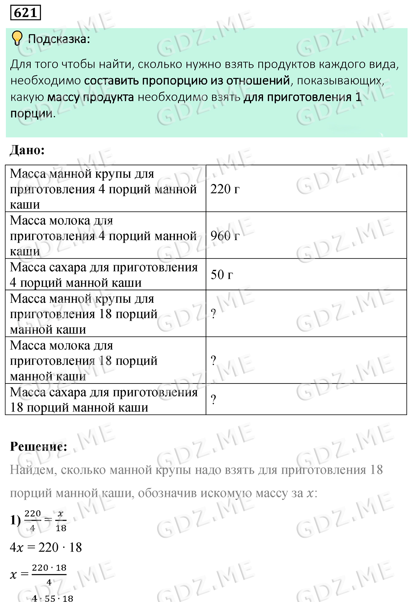 Подробный вариант решения из решебника (ГДЗ): Задание номер 621_1 (Глава 2 Обыкновенные дроби. Глава 3 Отношения и пропорции. §20. Пропорции) по предмету Математика, за 6 класс, авторы учебника Мерзляк, Полонский, Якир.