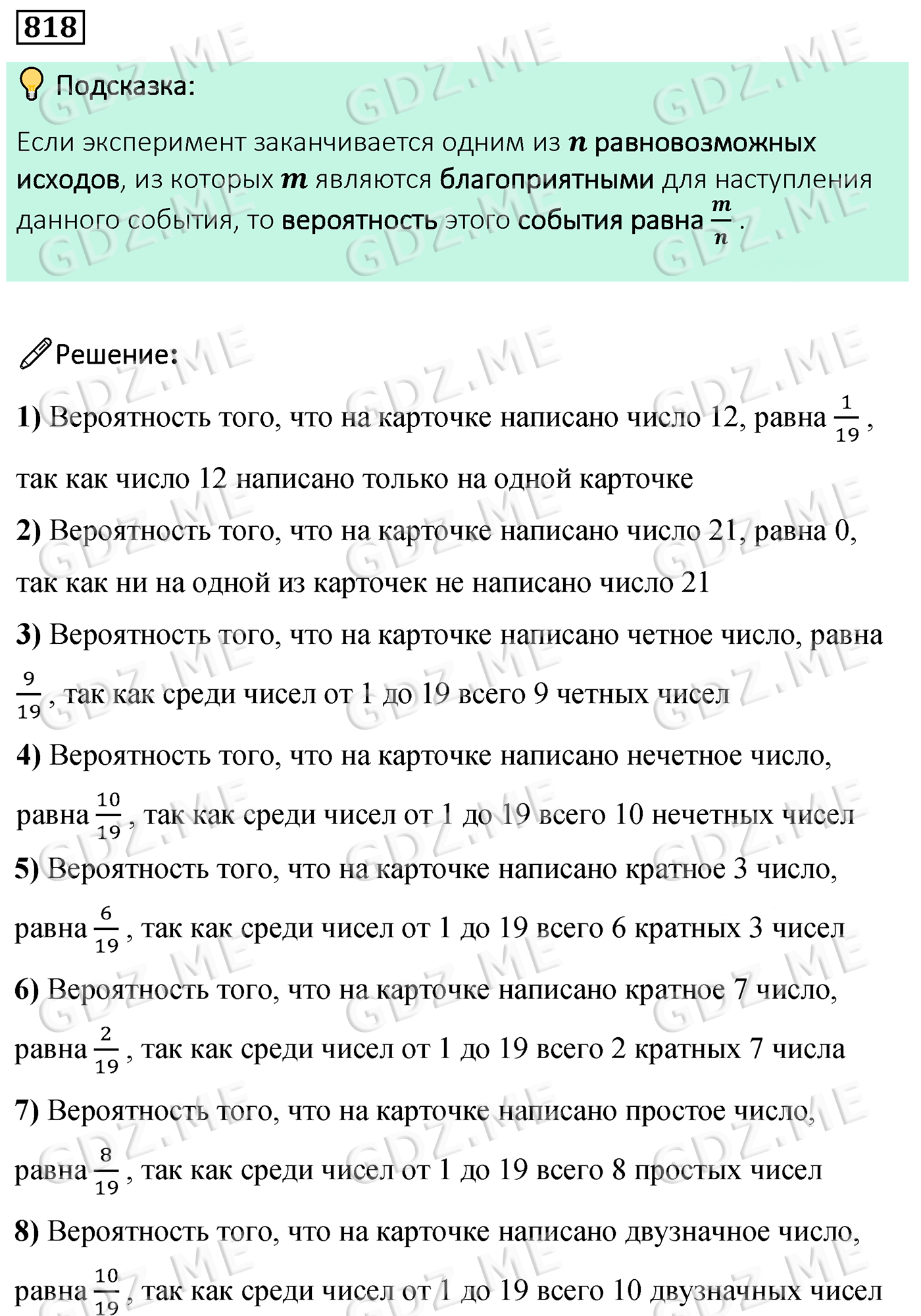 Подробный вариант решения из решебника (ГДЗ): Задание номер 818_1 (Глава 2 Обыкновенные дроби. Глава 3 Отношения и пропорции. §28. Случайные события. Вероятность случайного события) по предмету Математика, за 6 класс, авторы учебника Мерзляк, Полонский, Якир.