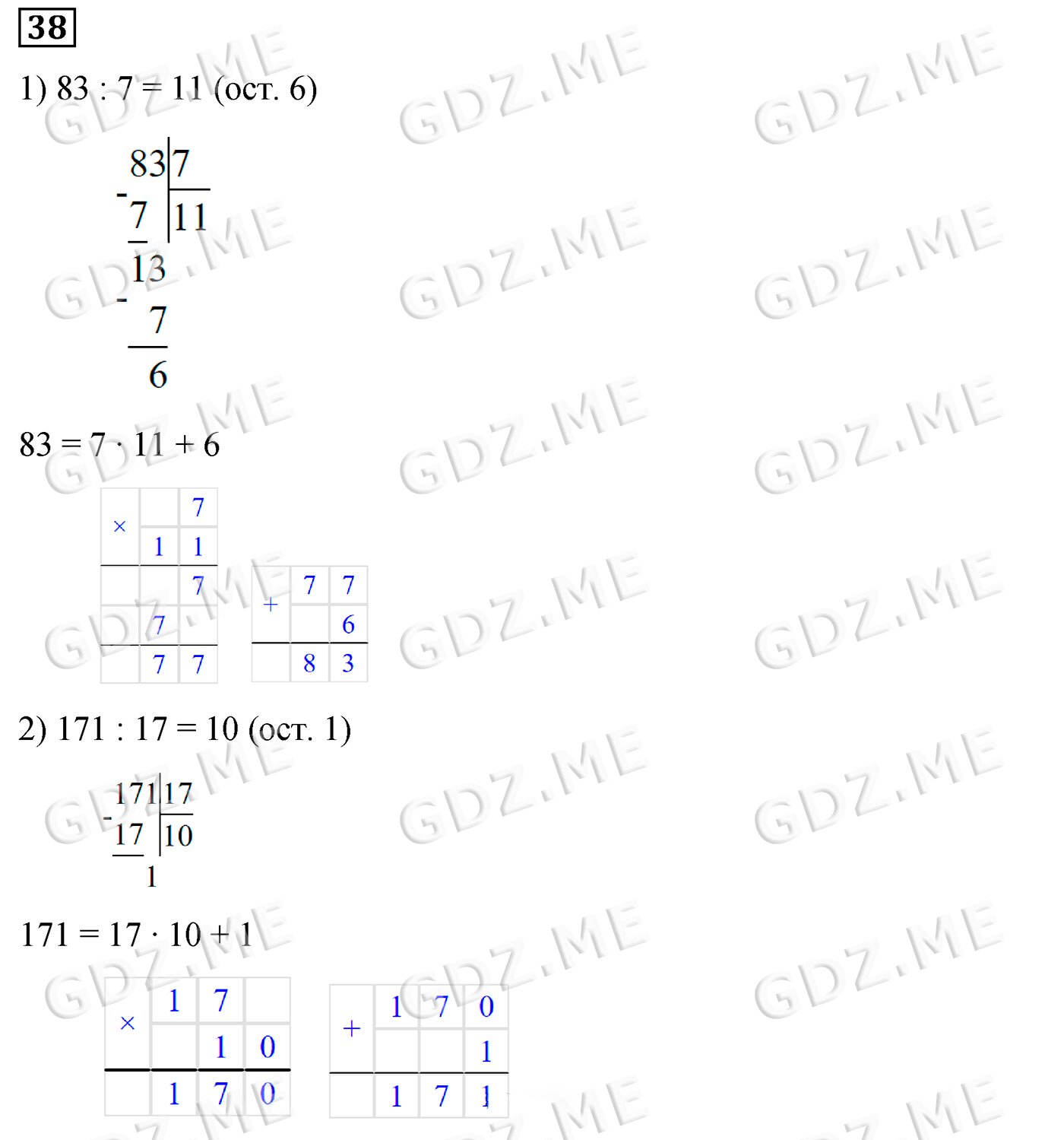 Подробный вариант решения из решебника (ГДЗ): Задание номер 38 (Глава 1 Делимость натуральных чисел. §1. Делители и кратные) по предмету Математика, за 6 класс, авторы учебника Мерзляк, Полонский, Якир.