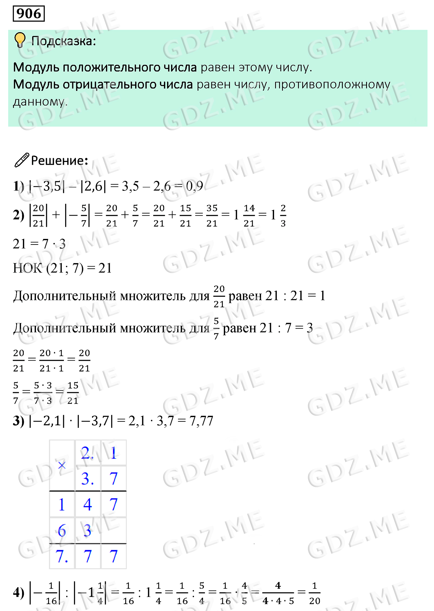 Подробный вариант решения из решебника (ГДЗ): Задание номер 906 (Глава 3 Отношения и пропорции. Глава 4 Рациональные числа и действия над ними. §32. Модуль числа) по предмету Математика, за 6 класс, авторы учебника Мерзляк, Полонский, Якир.
