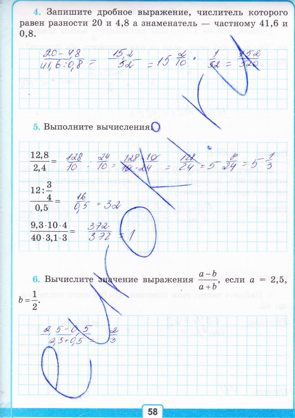 Подробный вариант решения из решебника (ГДЗ): Страница номер 58 по предмету Математика, за 6 класс, авторы учебника Рудницкая В.Н..
