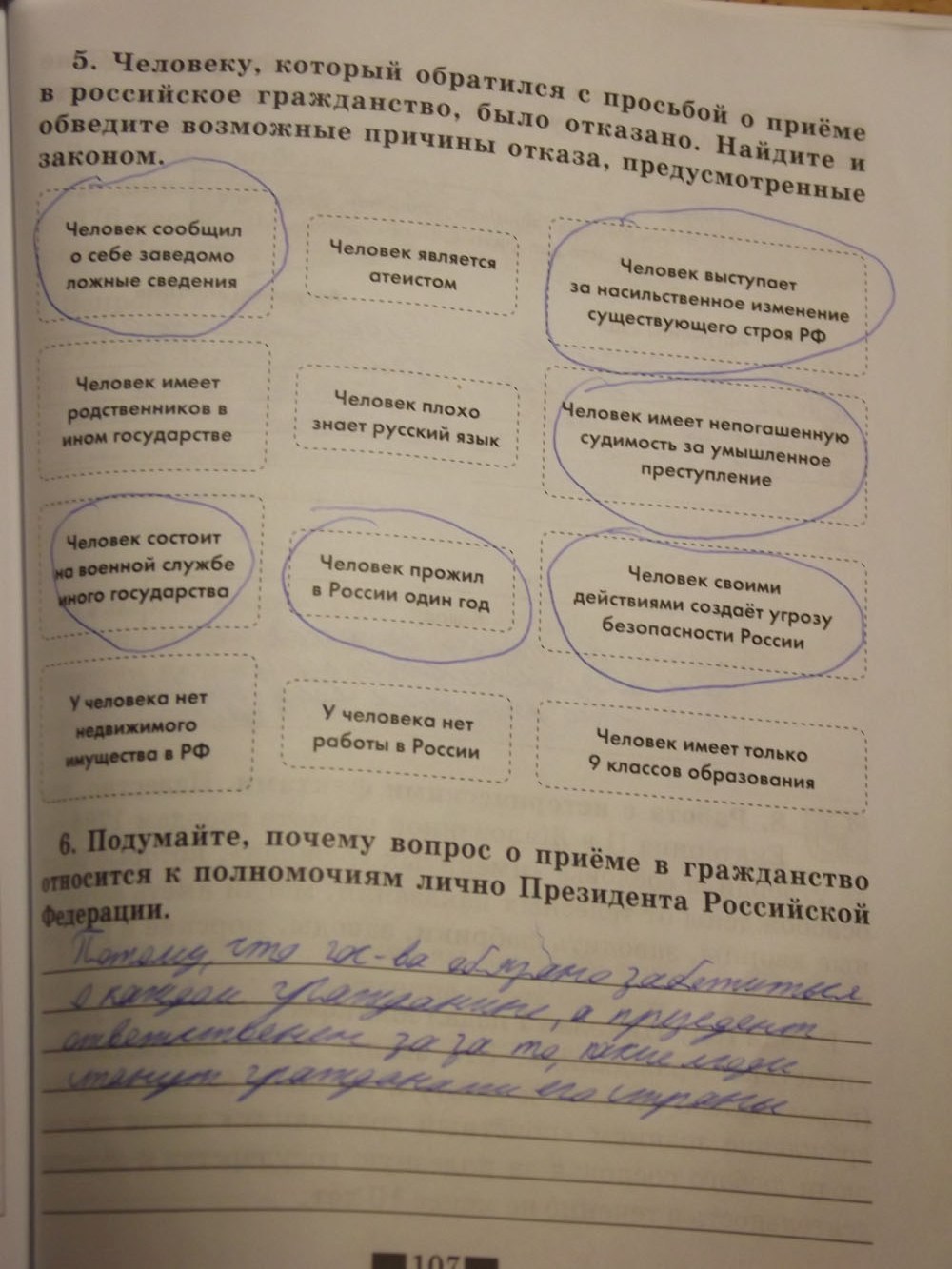 Подробный вариант решения из решебника (ГДЗ): Страница номер 107 по предмету Обществознание, за 6 класс, авторы учебника Хромова И.С. .