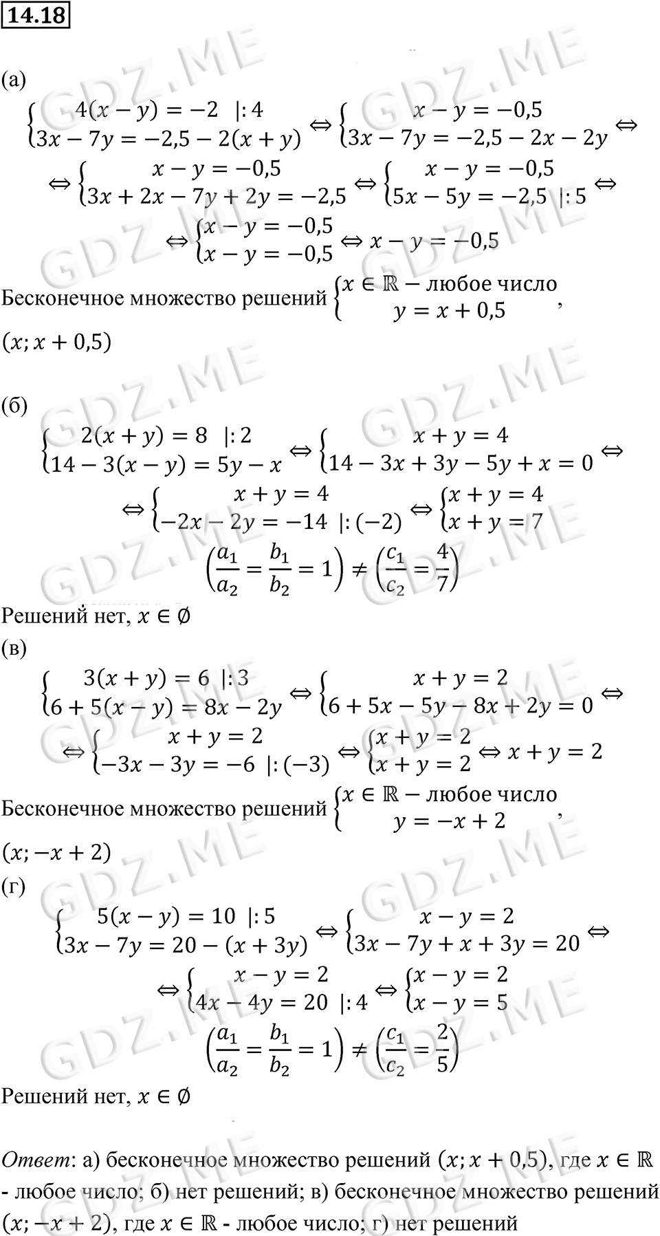 Подробный вариант решения из решебника (ГДЗ): Задание номер 14.18 (§14. Метод подстановки) по предмету Алгебра, за 7 класс, авторы учебника Мордкович, Александрова, Мишустина.