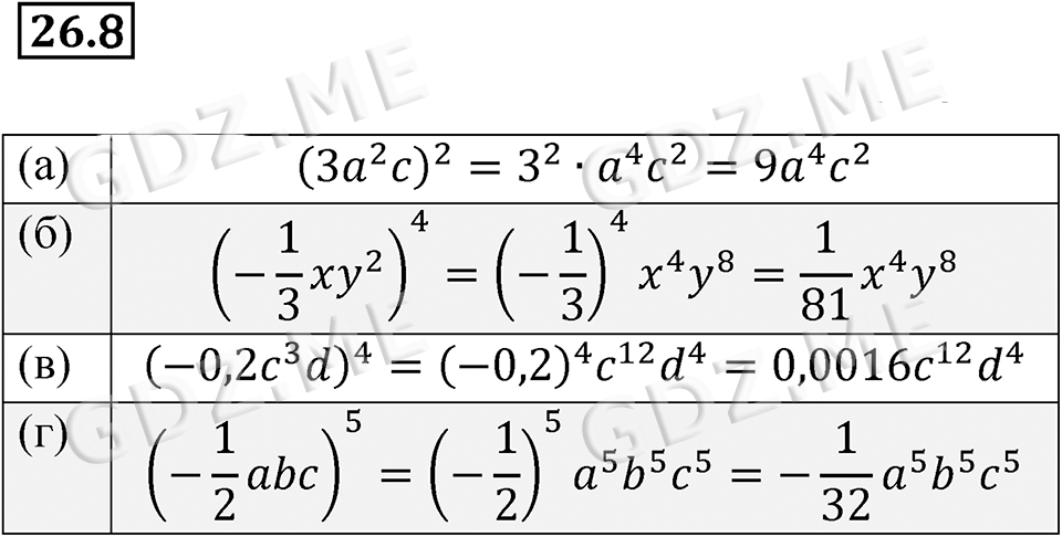 Подробный вариант решения из решебника (ГДЗ): Задание номер 26.8 (§26. Умножение одночленов. Возведение одночлена в натуральную степень) по предмету Алгебра, за 7 класс, авторы учебника Мордкович, Александрова, Мишустина.