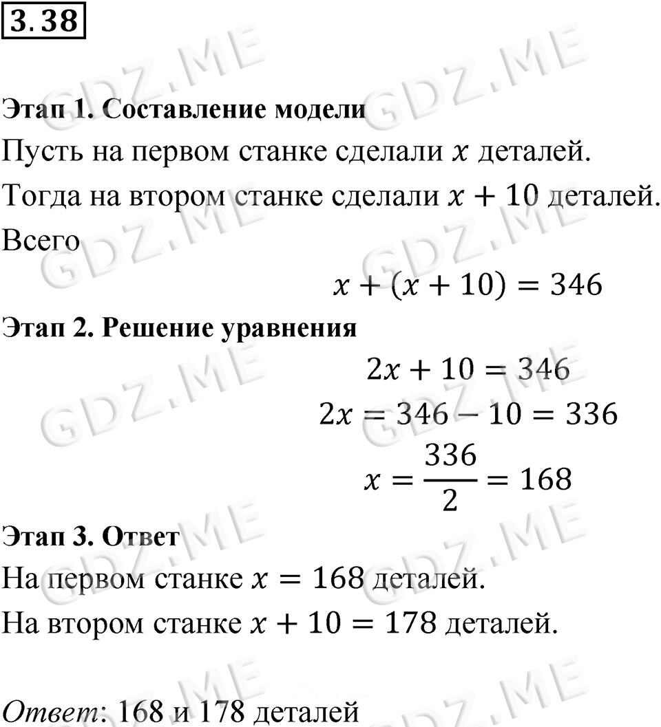 Подробный вариант решения из решебника (ГДЗ): Задание номер 3.38 (§3. Что такое математическая модель) по предмету Алгебра, за 7 класс, авторы учебника Мордкович, Александрова, Мишустина.