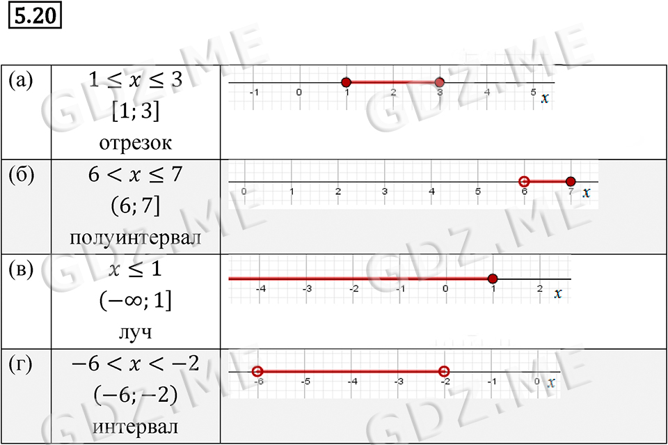 Подробный вариант решения из решебника (ГДЗ): Задание номер 5.20 (§5. Координатная прямая) по предмету Алгебра, за 7 класс, авторы учебника Мордкович, Александрова, Мишустина.