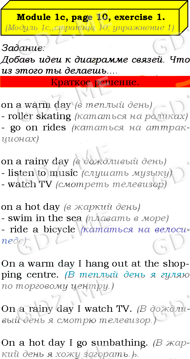 Подробный вариант решения из решебника (ГДЗ): Страница номер 10-1c-1 (Module 1. Lifestyles. Страница 10) по предмету Английский язык, за 7 класс, авторы учебника Ю.Е. Ваулина, Д. Дули, О.Е. Подолянко, В. Эванс.