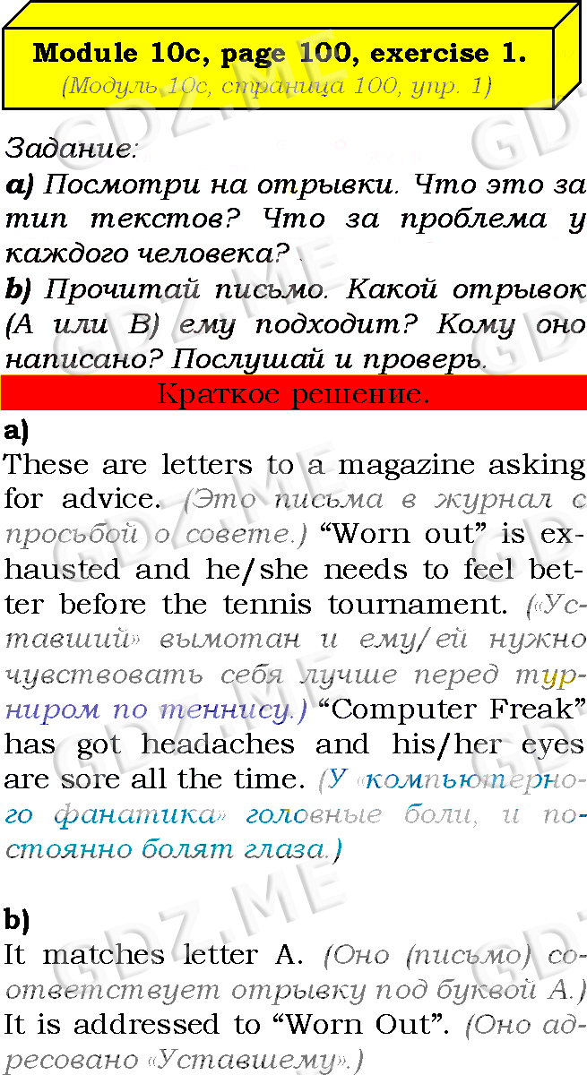 Подробный вариант решения из решебника (ГДЗ): Страница номер 100-10c-1 (Module 9. Shopping time. Module 10. Healthy body, healthy mind. Страница 100) по предмету Английский язык, за 7 класс, авторы учебника Ю.Е. Ваулина, Д. Дули, О.Е. Подолянко, В. Эванс.