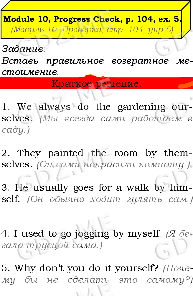 Подробный вариант решения из решебника (ГДЗ): Страница номер 104-10-5 (Module 9. Shopping time. Module 10. Healthy body, healthy mind. Страница 104) по предмету Английский язык, за 7 класс, авторы учебника Ю.Е. Ваулина, Д. Дули, О.Е. Подолянко, В. Эванс.
