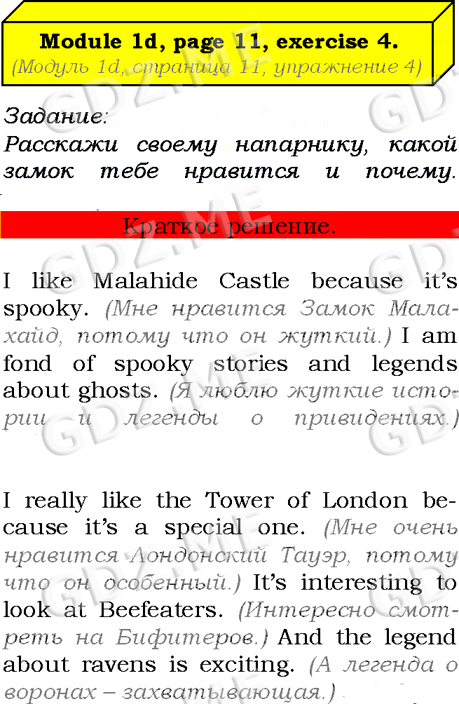 Подробный вариант решения из решебника (ГДЗ): Страница номер 11-1d-4 (Module 1. Lifestyles. Страница 11) по предмету Английский язык, за 7 класс, авторы учебника Ю.Е. Ваулина, Д. Дули, О.Е. Подолянко, В. Эванс.