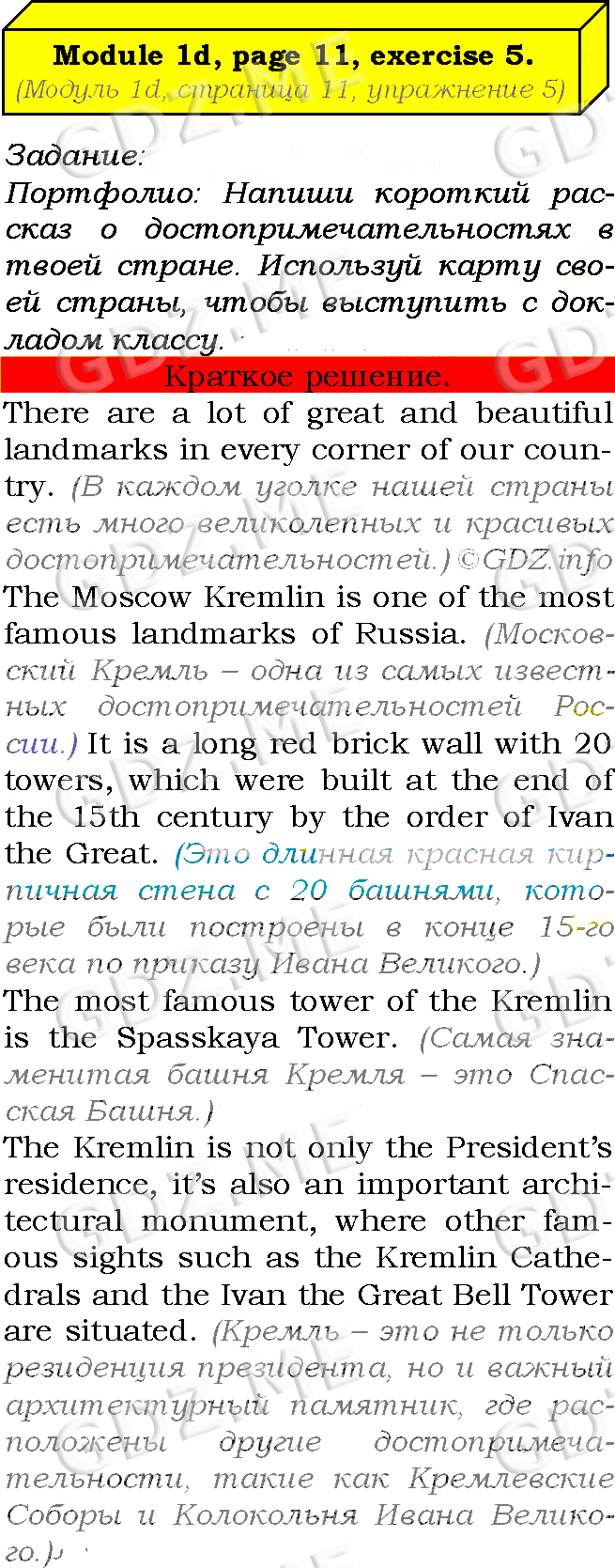 Подробный вариант решения из решебника (ГДЗ): Страница номер 11-1d-5 (Module 1. Lifestyles. Страница 11) по предмету Английский язык, за 7 класс, авторы учебника Ю.Е. Ваулина, Д. Дули, О.Е. Подолянко, В. Эванс.