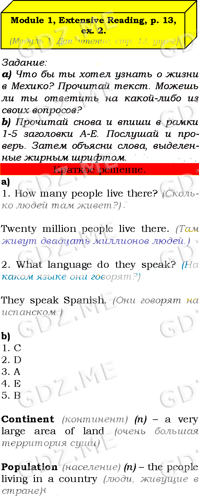 Подробный вариант решения из решебника (ГДЗ): Страница номер 13-1-2 (Module 1. Lifestyles. Страница 13) по предмету Английский язык, за 7 класс, авторы учебника Ю.Е. Ваулина, Д. Дули, О.Е. Подолянко, В. Эванс.