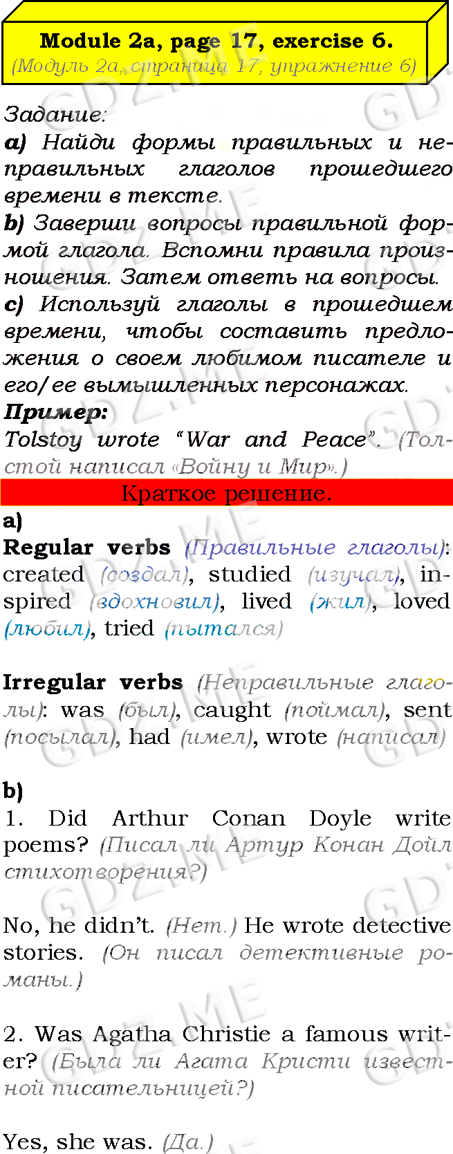 Подробный вариант решения из решебника (ГДЗ): Страница номер 17-2a-6 (Module 2. Tale time. Страница 17) по предмету Английский язык, за 7 класс, авторы учебника Ю.Е. Ваулина, Д. Дули, О.Е. Подолянко, В. Эванс.