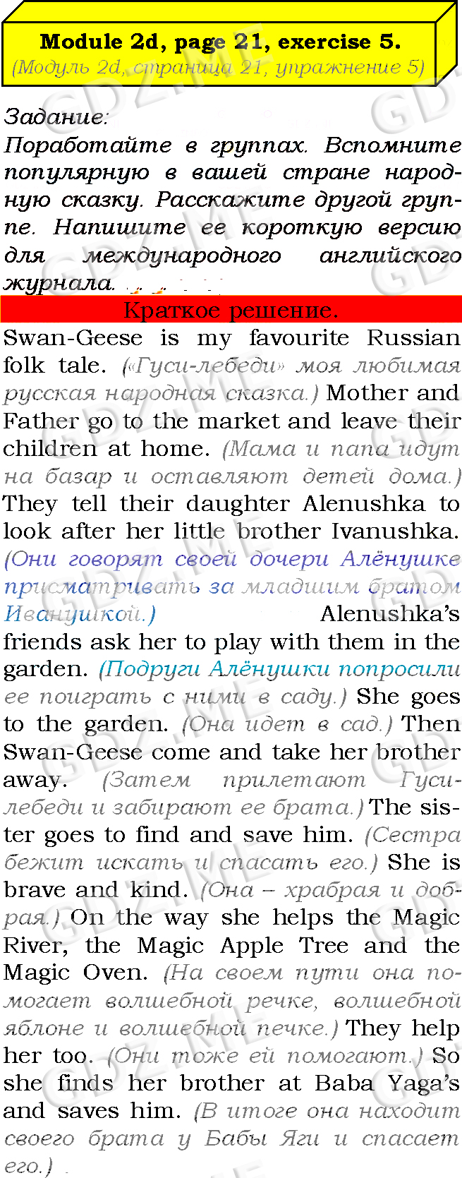 Подробный вариант решения из решебника (ГДЗ): Страница номер 21-2d-5 (Module 2. Tale time. Страница 21) по предмету Английский язык, за 7 класс, авторы учебника Ю.Е. Ваулина, Д. Дули, О.Е. Подолянко, В. Эванс.