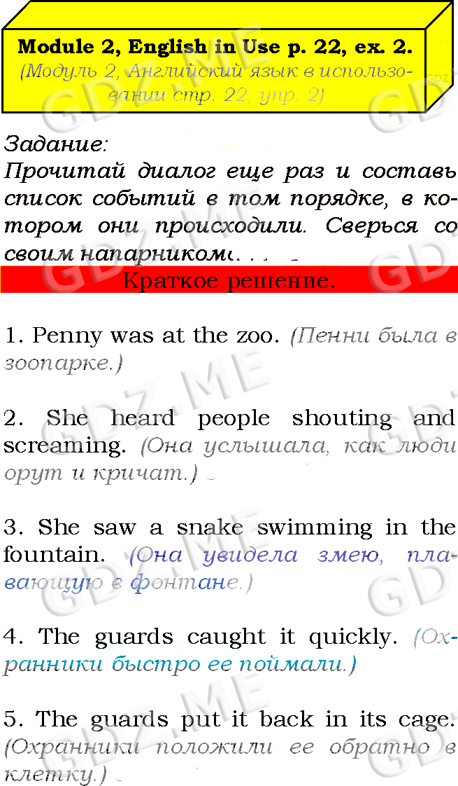 Подробный вариант решения из решебника (ГДЗ): Страница номер 22-2-2 (Module 2. Tale time. Страница 22) по предмету Английский язык, за 7 класс, авторы учебника Ю.Е. Ваулина, Д. Дули, О.Е. Подолянко, В. Эванс.