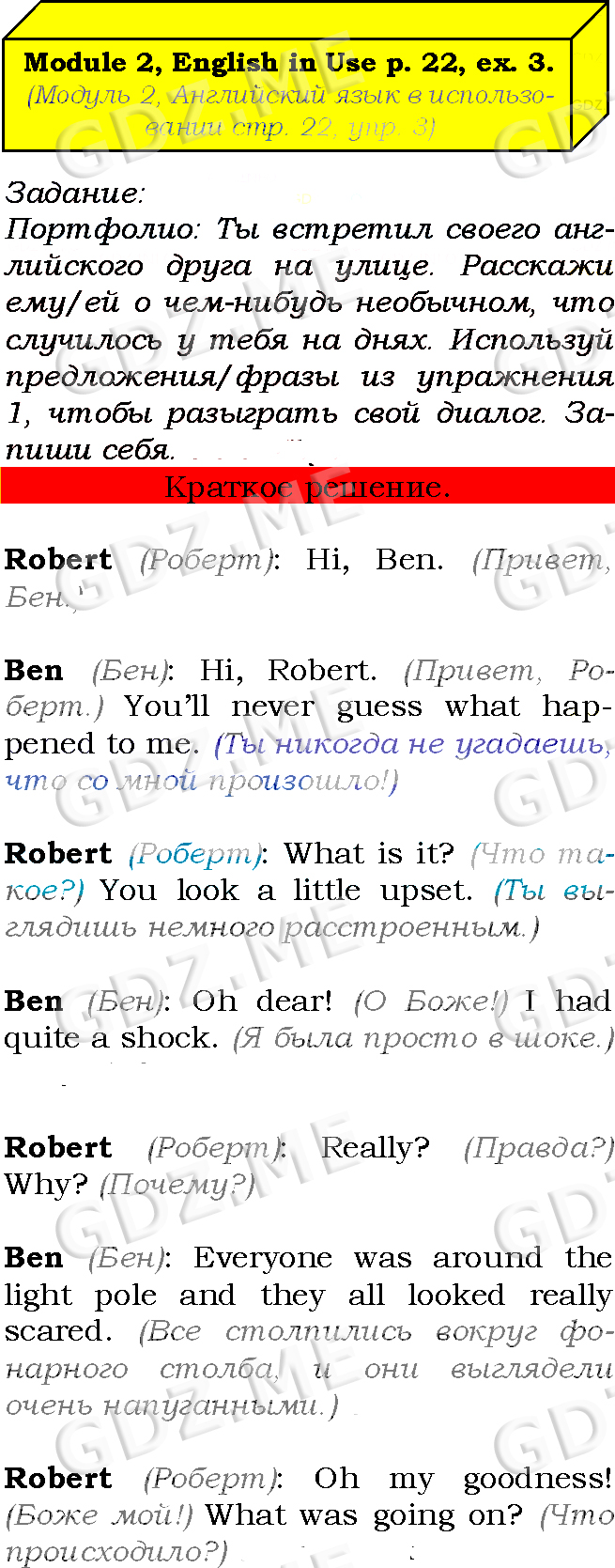 Подробный вариант решения из решебника (ГДЗ): Страница номер 22-2-3 (Module 2. Tale time. Страница 22) по предмету Английский язык, за 7 класс, авторы учебника Ю.Е. Ваулина, Д. Дули, О.Е. Подолянко, В. Эванс.