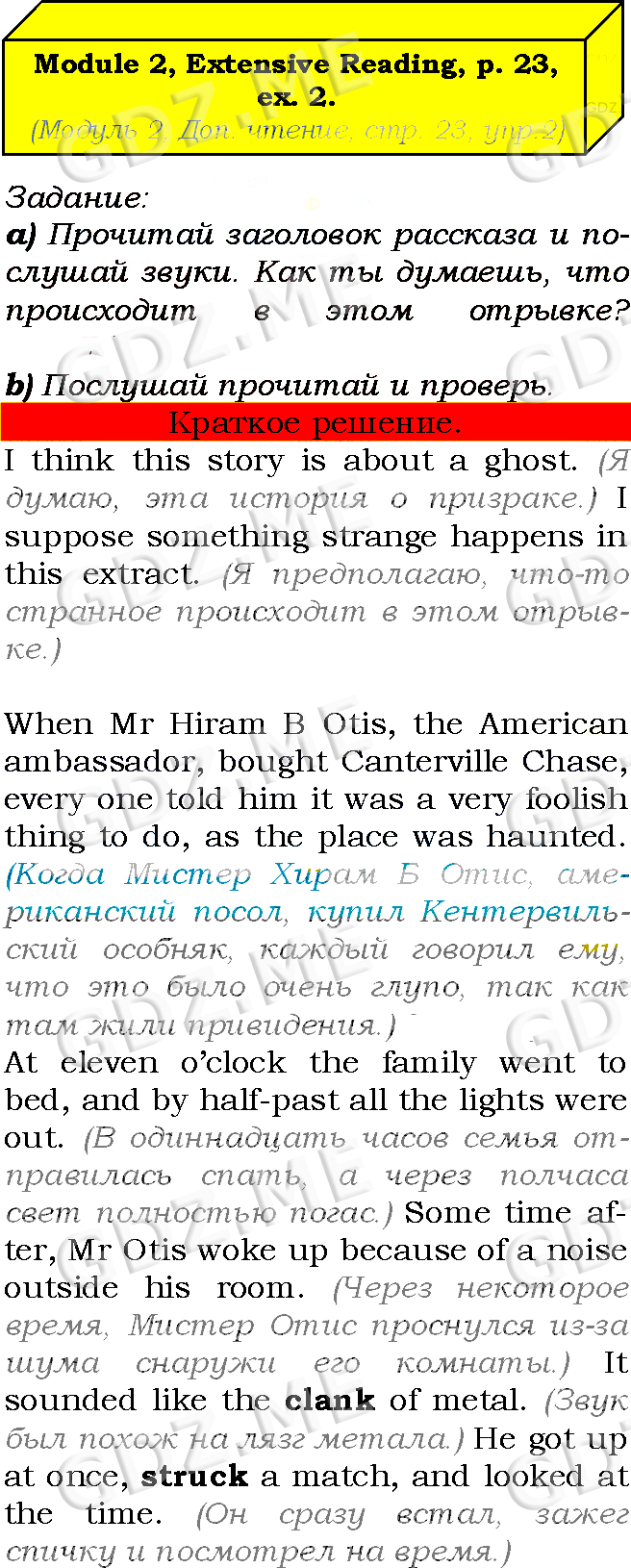 Подробный вариант решения из решебника (ГДЗ): Страница номер 23-2-2 (Module 2. Tale time. Страница 23) по предмету Английский язык, за 7 класс, авторы учебника Ю.Е. Ваулина, Д. Дули, О.Е. Подолянко, В. Эванс.