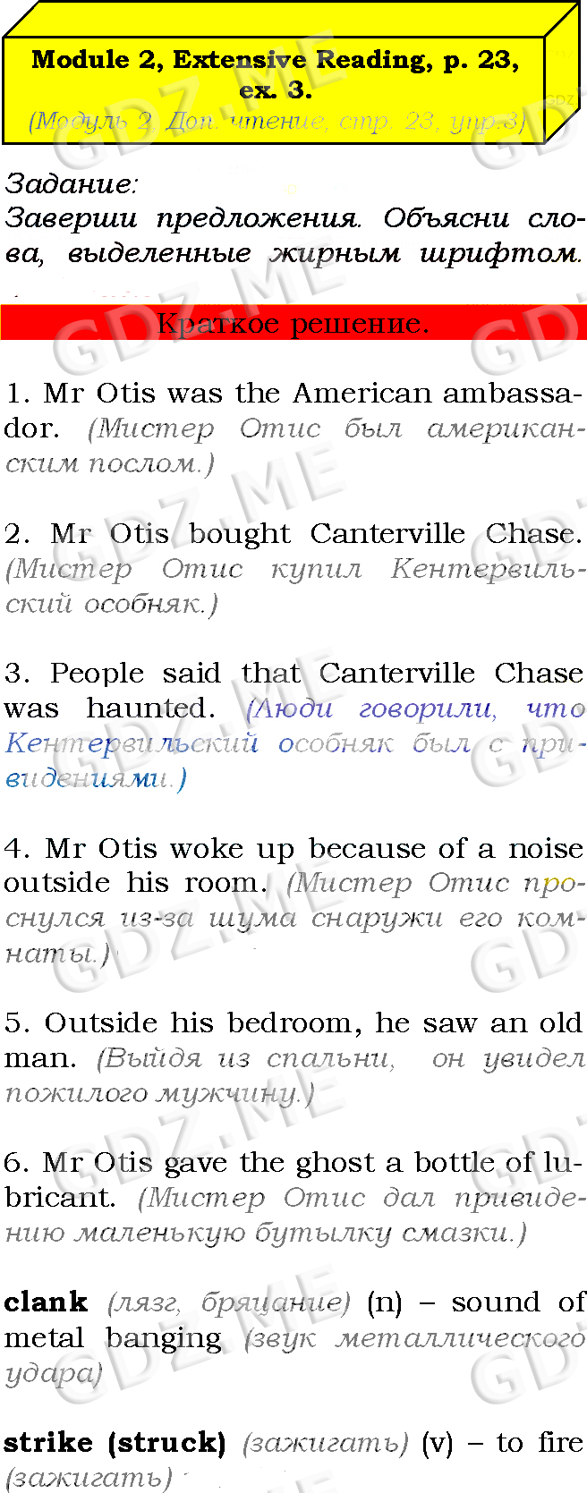 Подробный вариант решения из решебника (ГДЗ): Страница номер 23-2-3 (Module 2. Tale time. Страница 23) по предмету Английский язык, за 7 класс, авторы учебника Ю.Е. Ваулина, Д. Дули, О.Е. Подолянко, В. Эванс.