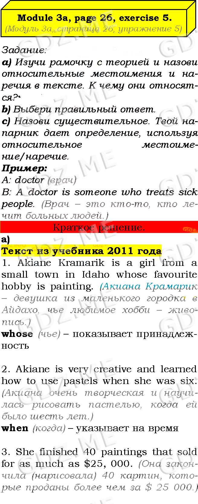 Подробный вариант решения из решебника (ГДЗ): Страница номер 26-3a-5 (Module 2. Tale time. Module 3. Profiles. Страница 26) по предмету Английский язык, за 7 класс, авторы учебника Ю.Е. Ваулина, Д. Дули, О.Е. Подолянко, В. Эванс.