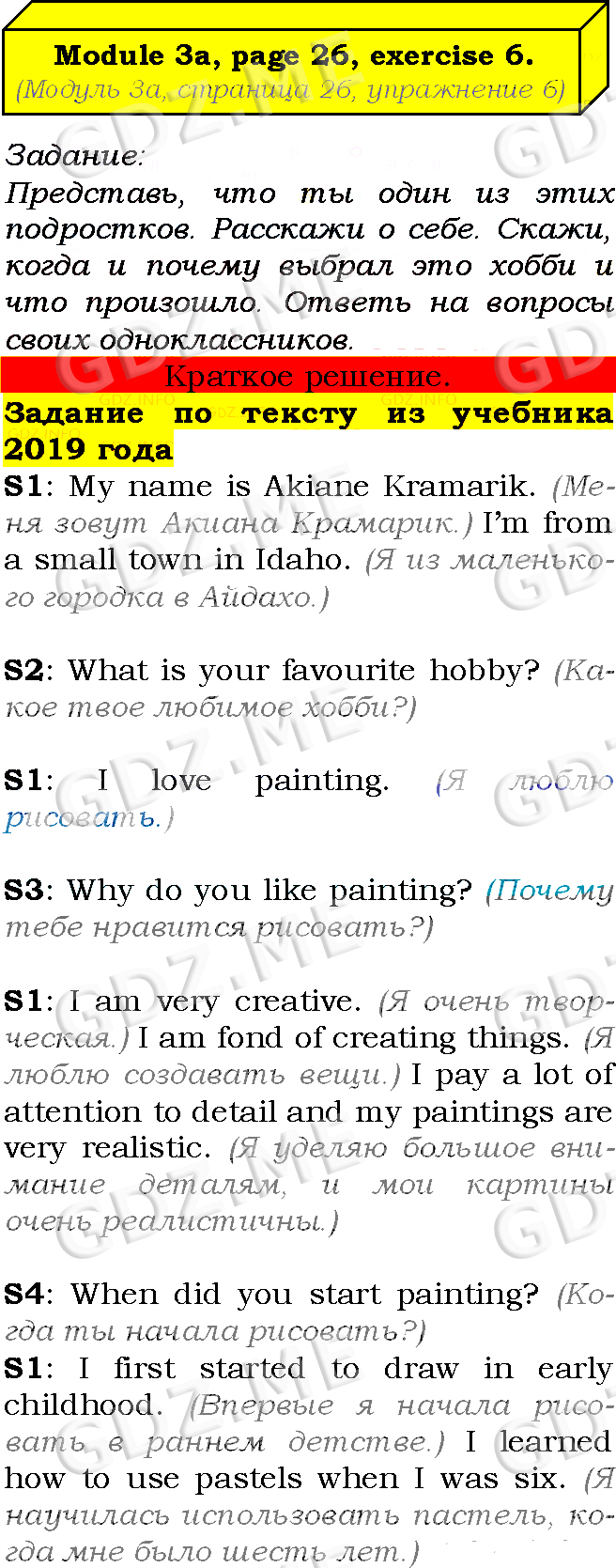 Подробный вариант решения из решебника (ГДЗ): Страница номер 26-3a-6 (Module 2. Tale time. Module 3. Profiles. Страница 26) по предмету Английский язык, за 7 класс, авторы учебника Ю.Е. Ваулина, Д. Дули, О.Е. Подолянко, В. Эванс.