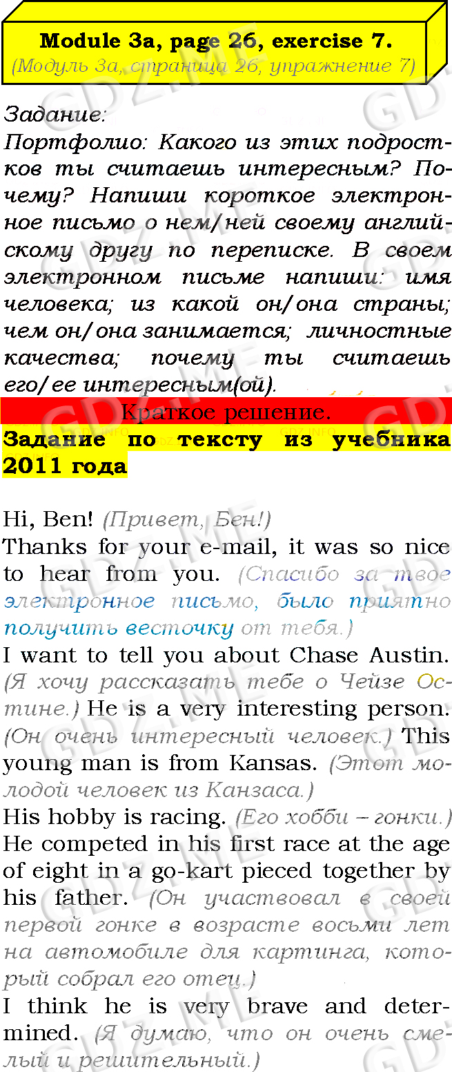Подробный вариант решения из решебника (ГДЗ): Страница номер 26-3a-7 (Module 2. Tale time. Module 3. Profiles. Страница 26) по предмету Английский язык, за 7 класс, авторы учебника Ю.Е. Ваулина, Д. Дули, О.Е. Подолянко, В. Эванс.