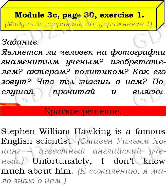 Подробный вариант решения из решебника (ГДЗ): Страница номер 30-3c-1 (Module 2. Tale time. Module 3. Profiles. Страница 30) по предмету Английский язык, за 7 класс, авторы учебника Ю.Е. Ваулина, Д. Дули, О.Е. Подолянко, В. Эванс.